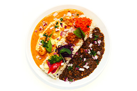 大米和蔬菜的香料咖哩 在福島享用熱盤餃子。 送的新鮮海鮮蓋飯。